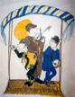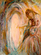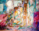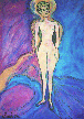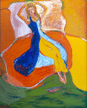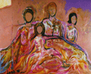 Extended Family was shown at the United Nations' Fourth World Conference on Women in Beijing in 1995 by World's Women On-Line! on an 8 foot by 11 foot projection screen. Playing In The Band was painted during my period as a New Wave DJ on radio station KFJC in 1986. Free was chosen to be shown when Maya Angelou came into town to read her work in 1993. Jerry Forever Young was painted in memory of Jerry Garcia. Ken Kesey Comes To La Honda is a collage of photos taken in 1991 when the group visited in their bus Further.