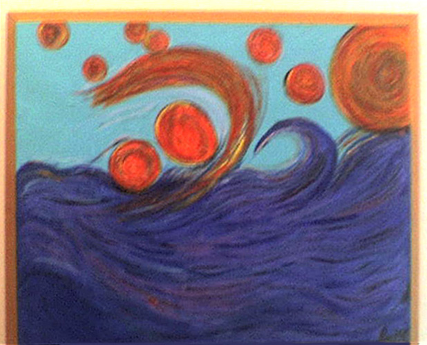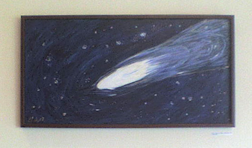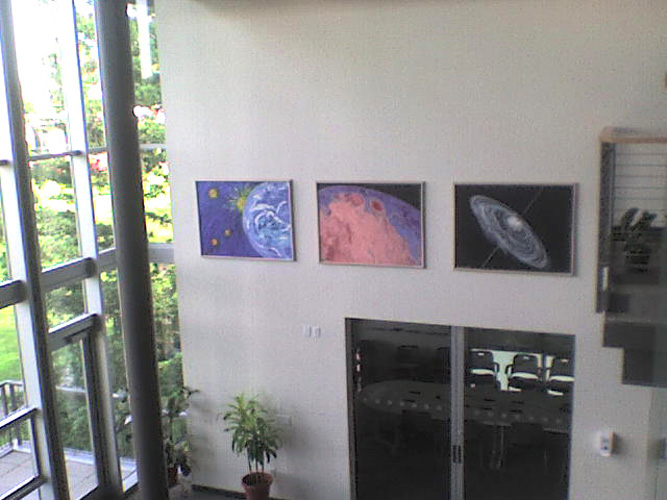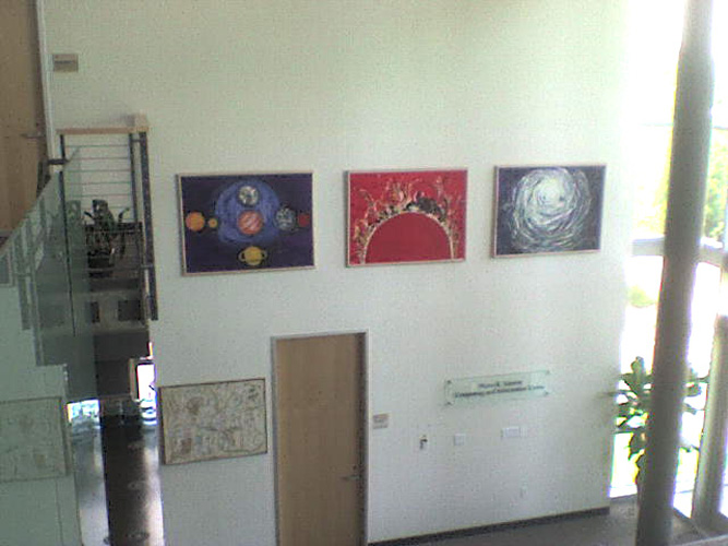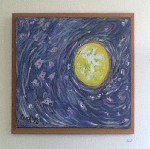 The art work goes back to Leah's early years of living at the Weizmann Institute in the 1970's. With a major exhibit at NASA Ames in 1997, the work developed to include the Galactic Mysteries series of paintings as well as more new pieces now being exhibited for the first time.